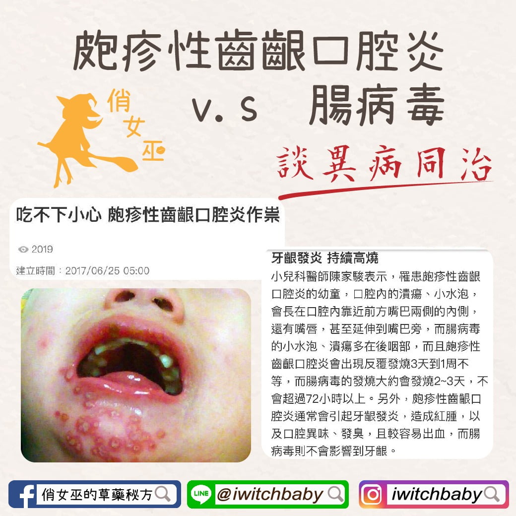 這個皰疹性齒齦口腔炎,跟腸病毒的症狀幾乎一樣:口臭,口咽糜爛長瘡,發燒,食不下(胃口差)…在西醫兩種病名就會依病名兩種治法,中醫跟西醫最不同的,就是不依(西醫的)病名。