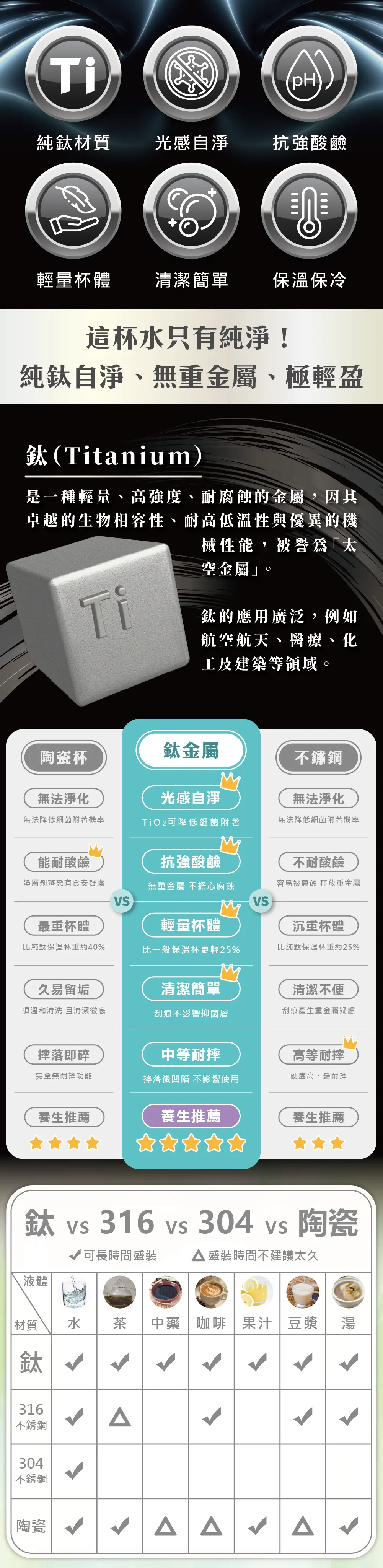 【這杯水只有純淨!純鈦自淨、無重金屬、極輕盈】