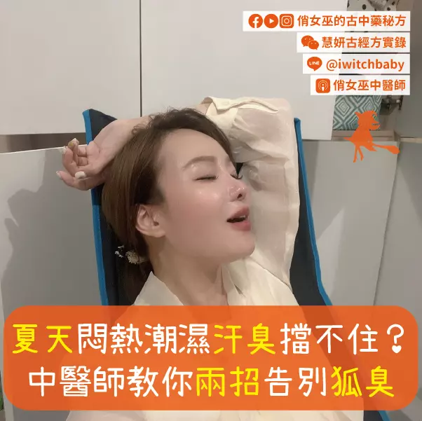 俏女巫夏天悶熱潮濕汗臭擋不住?中醫師教你兩招告別狐臭 昨天助理一到就說 「這天氣憋氣都憋到心悸頭脹暈啊!有...