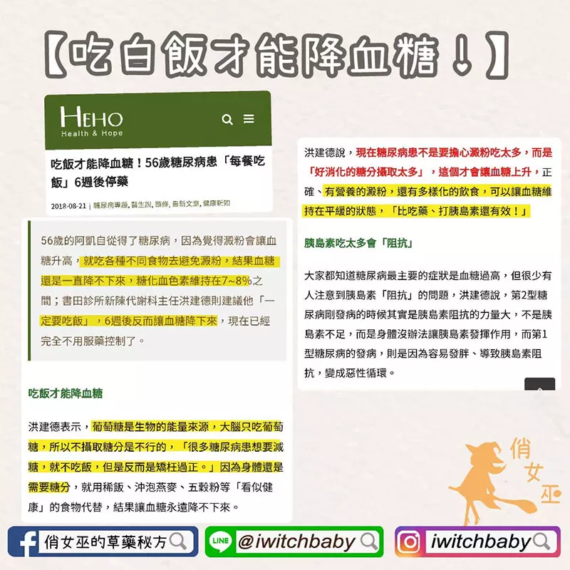 俏女巫又有人說糖尿病不能吃白飯,這個新聞大家真的要看一下~~~其實近年來有些西醫也在推崇糖尿病患者可以吃點...